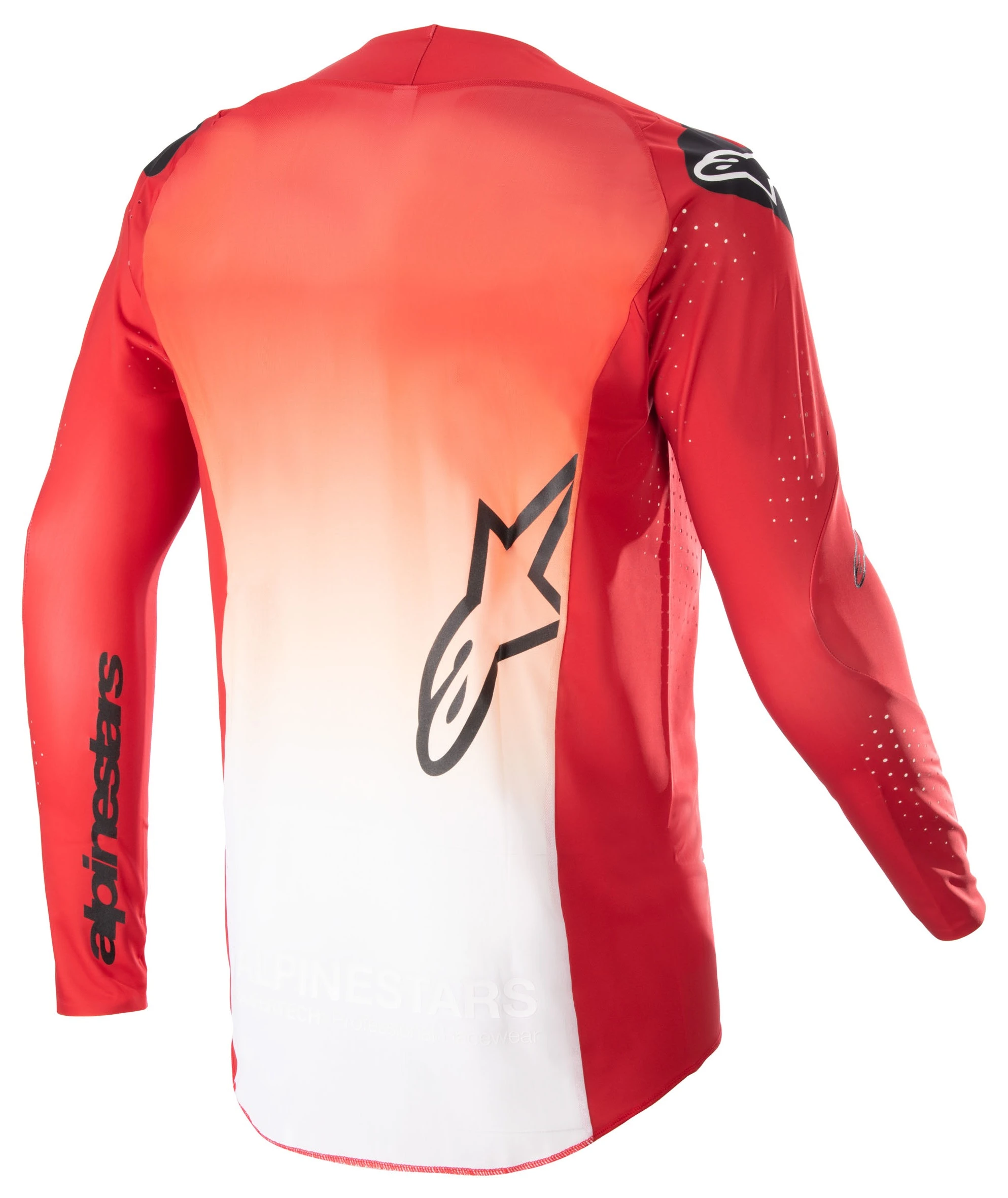 The Alpinestars Supertech Jersey designed for superior dirt riding performance. With a new performance design for an athletic fit, a chassis consisting entirely of advanced stretch mesh and an ultra-lightweight construction, the Supertech Jersey is Alpinestars lightest ever MX jersey, featuring a host of race proven technologies such as the innovative ergonomic shoulder and arm construction for superior freedom of movement and an extended back panel to maintain a flawless riding fit.