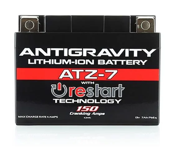 Never again worry about getting stranded with a dead battery! Antigravity Batteries now offer the ground-breaking âRe-Start (RS)â line of batteries â the first batteries with built-in jump starting! The revolutionary ATZ-7 Re-Start Battery intelligently monitors its status, and just before going completely dead puts itself in sleep mode with just enough energy to get your vehicle started again. Simply press the Re-Start button located on the battery, start your vehicle and ride off. No more dead battery emergencies or being stranded!