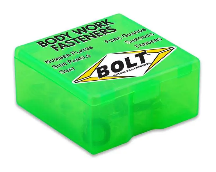 The Bolt Full Plastic Works Fastener Kits have been carefully researched and designed to include all fasteners, shoulder bolts, aluminum bushings and works washers needed to replace fork guards, fenders, number plates, radiator shrouds and seat hardware.