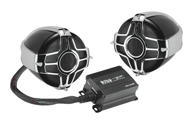 Add a high performance two piece speaker system to your bike with the standalone Boss Audio Rebel 600 Watt Kit. It features a plug-and-play wire harness for sending power to the weatherproof speaker pods. You have the options of a 3.5mm audio jack input for physically sending tunes to the amp or you can pair up to your smart phone using a wireless Bluetooth connection. The Rebel includes a wired weatherproof volume remote that is panel-mount ready.