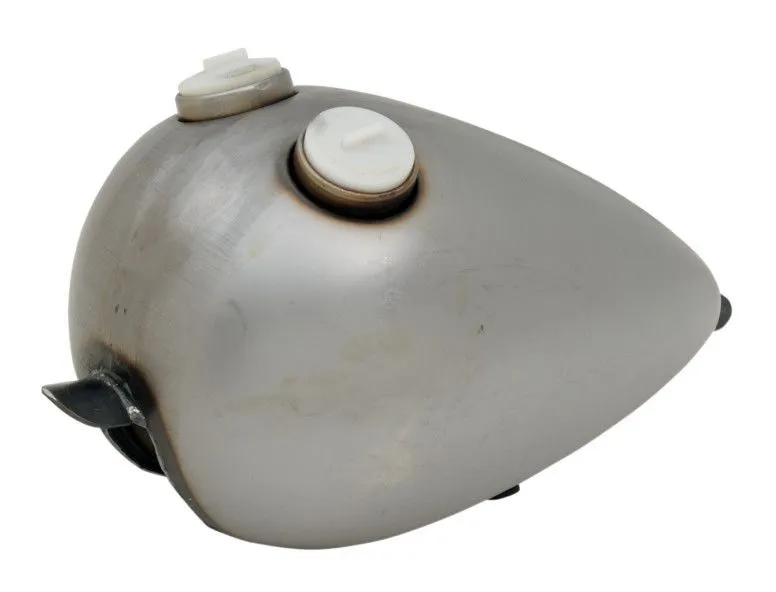 Axed-style narrow gas tanks for custom applications that have a great vintage look. Made from precision steel stampings. Universal brackets make it easy to mount it to any stock or custom frame. Left filler bung is non-functional on dual cap tank, unless you want to stash something in there.