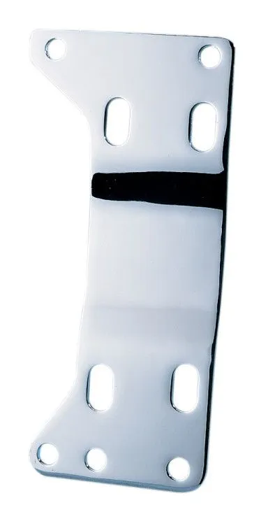 This trans plate has a heavy-duty steel construction and a chrome finish.