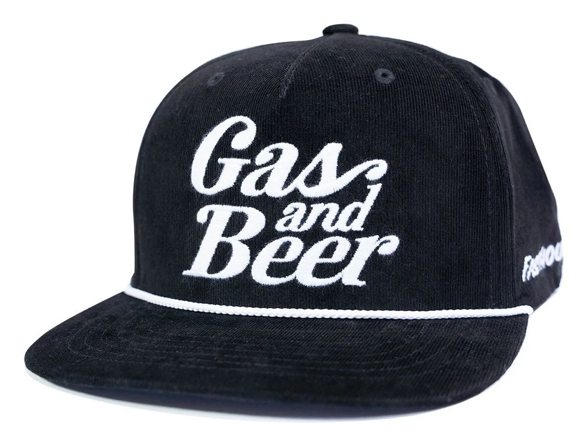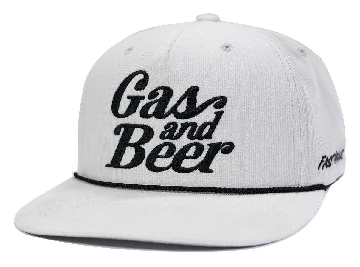 Gas and Beer! The Tavern Hat from the Fasthouse x 805 collection is a medium profile 5-panel snapback hat that is constructed of premium 100% cotton corduroy. It features oversized front embroidery, custom trims, and a brim rope with matching underbrim.