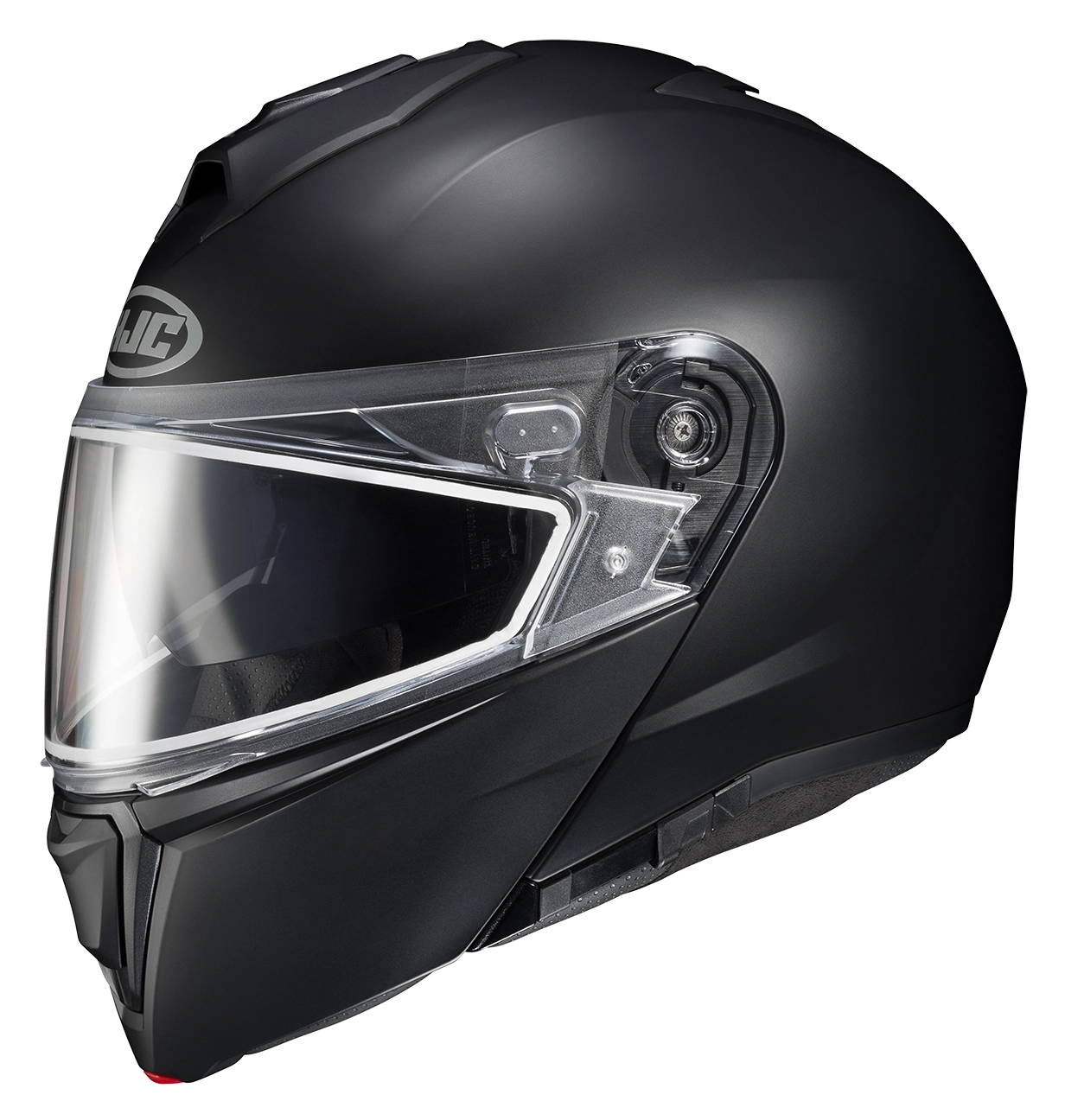 The HJC i90 Modular Snow Helmet is a winter helmet with a polycarbonate shell, internal sun visor and included dual lens face shield. The SuperCool moisture wicking liner system keeps you comfortable on long rides. A special groove along the temples accommodates glasses so you can see clearly regardless of your myopia. Paired with the sealed face shield, an included breath guard and chin curtain seal out the cold and help battle unwanted fog even further.