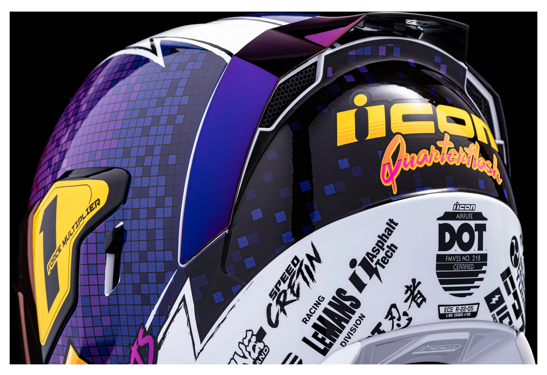 The helmet’s ventilation system consists of strategically placed air vents, intakes, air channels and exhaust ports. The oversized chin bar intake enhances airflow, keeping you cool by routing air where you need it most. A decrease of both drag and weight is achieved by sculpting the traditional neckline of the Airflite to avoid jacket or suit interference.