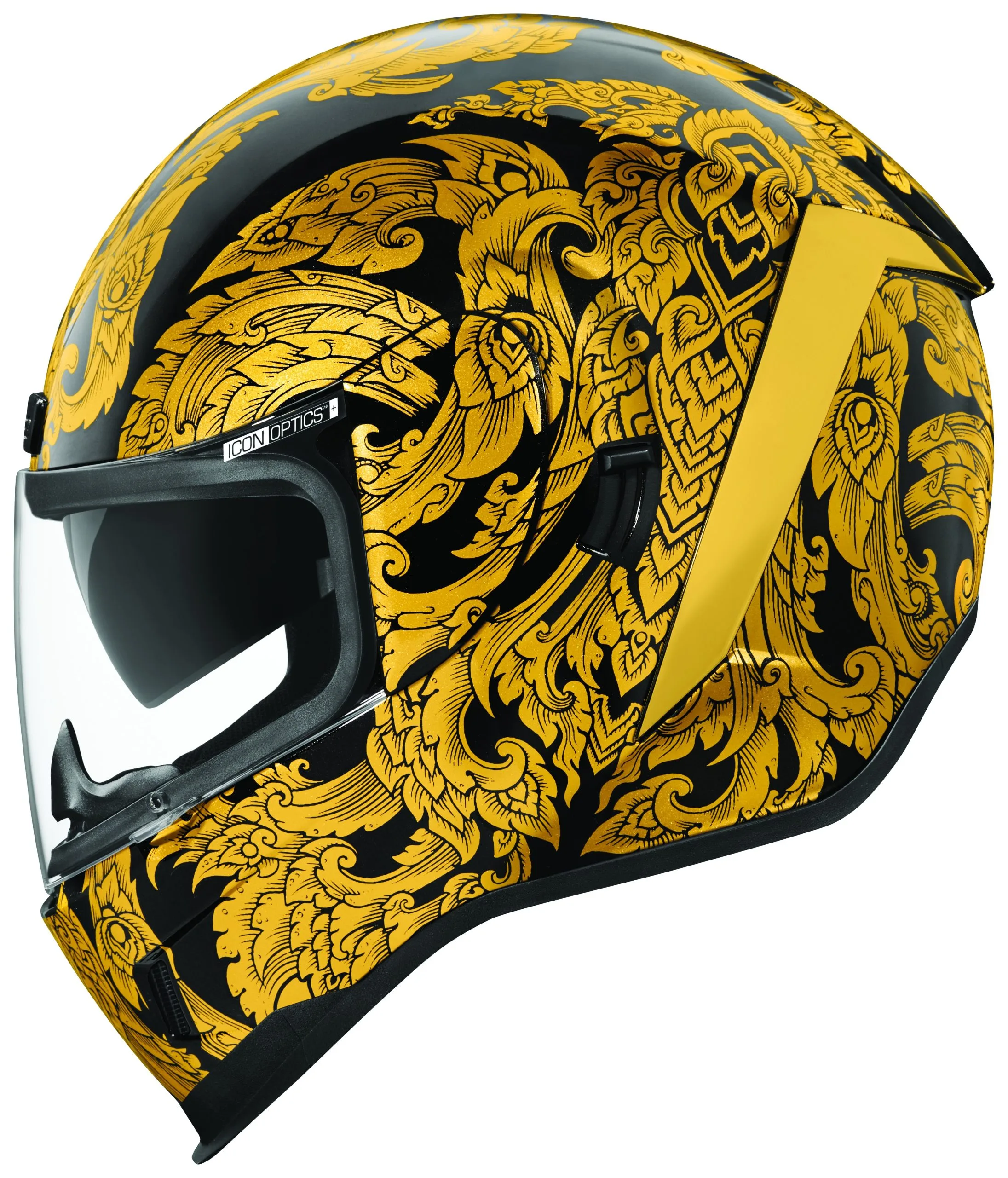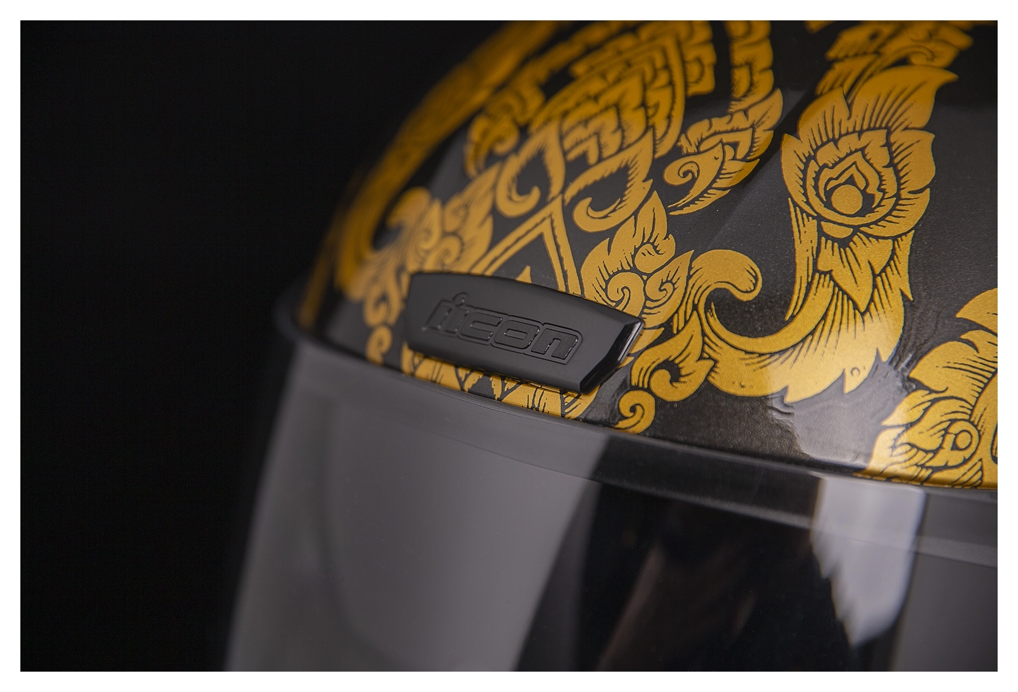 Built for riders who need the accouterments of a touring helmet with the performance of a track helmet. When you want to have your cake and eat it too the Airform is a baker’s dozen of aggro-cupcakes. The Icon Airform Helmet pilfers the best ingredients from the performance oriented Airframe Pro and the feature rich Airflite. Icon then pats it, rolls it and marks it with a B before sliding it into an industrial oven for you and me. The result is an everyday helmet, if your everyday includes commuting to work in an aggressive riding posture or leisurely attacking apexes while on tour. Hold onto your buns, baker’s man.