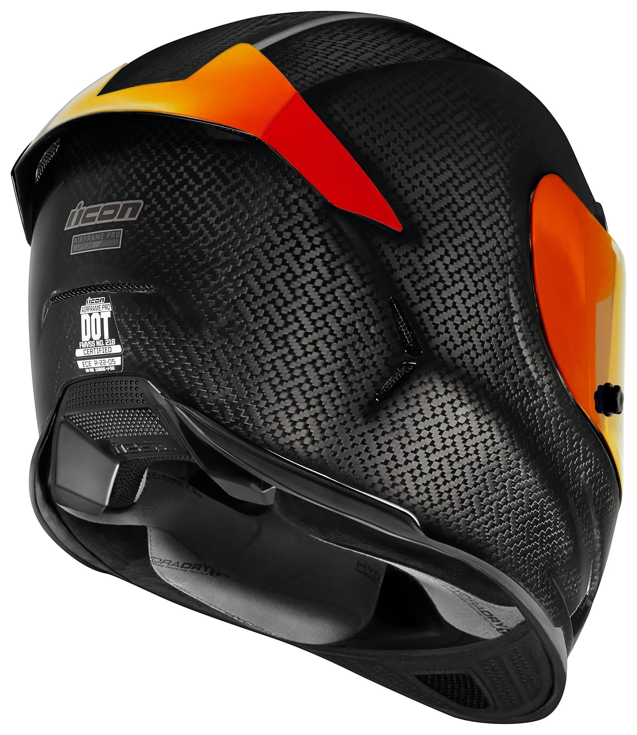 The dramatically reduced shell profile, comprised of aerospace-grade carbon fiber (FRP) features a track-recognized ECE certification. Precision assembly techniques further this dedication to mass reduction, allowing Icon to craft a helmet that is exceptionally light and peerlessly outfitted. Internally, the traditional three-piece liner has been upgraded to a five-piece liner, providing a greater amount of fitment combinations for each unique head shape. Crown, lateral, fore and aft padding components allow for a possibility of 27 fitment combinations in a single shell, double that of the Icon Airframe’s competitors.