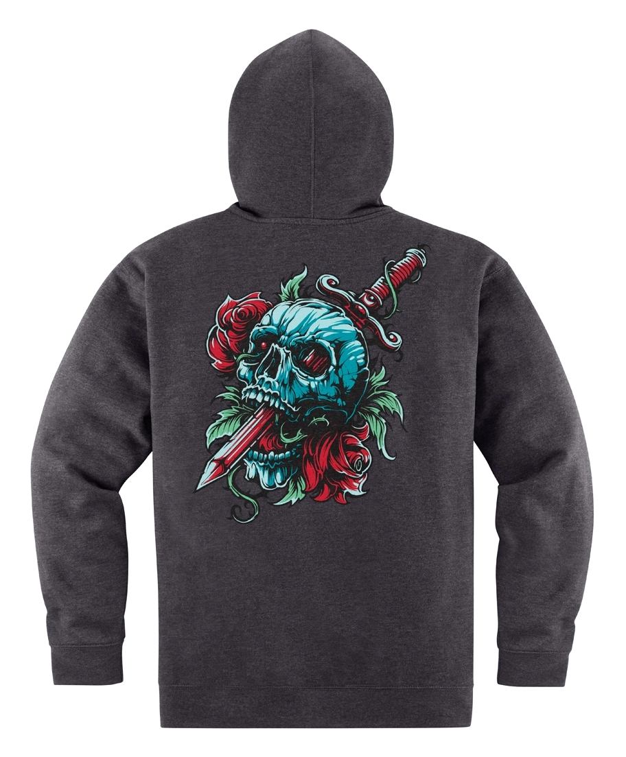 Roses are red, this skull is pale blue, beware of the sword that pierces it through. Throw on the Omnicrux Hoody before tearing up the city streets or layer up on chilly days.