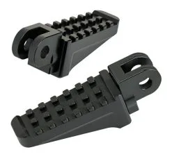 Give your bike a unique design twist with these all-billet aluminum adjustable serrated footpegs. The comfortable serrated foot surface area gives you a wider area for your feet and provides a good bite onto the bottom of your shoe. Full 360 degree footpeg rotation makes these footpegs perfect for any application. Footpegs have a pitch adjustment screw that enables you to change the angle of the peg in order to adjust it to a level riding position so the pegs don’t appear to sag over time.