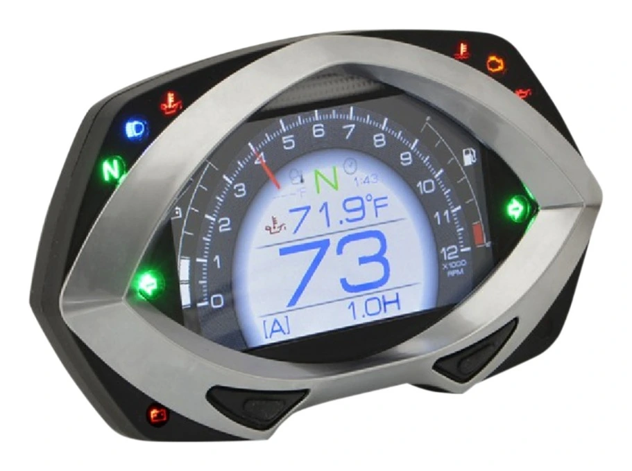 - Clear back-lit display shows speed (0-360 km/h; 0-225 mph), tachometer, odometer, two trip meters, thermometer, water temperature, gear meter, volt meter, fuel meter, clock and more