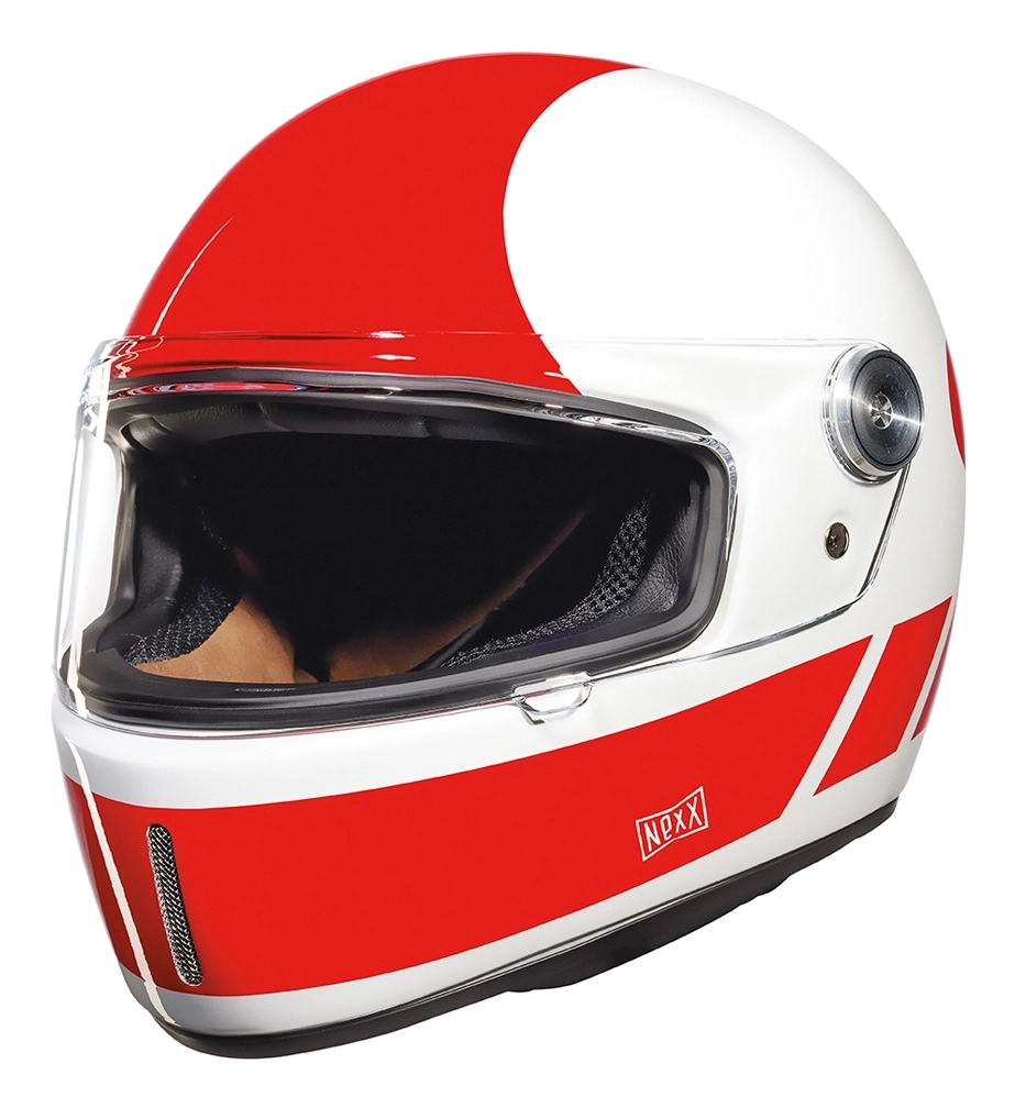 Seventies styling meets modern comfort, materials and construction. The XG100 Racer only looks vintage. Underneath that premium paint lies a carbon composite exterior shell and a plushly lined interior. The shield closes with a firm detent and wears spun aluminum pivot hardware.