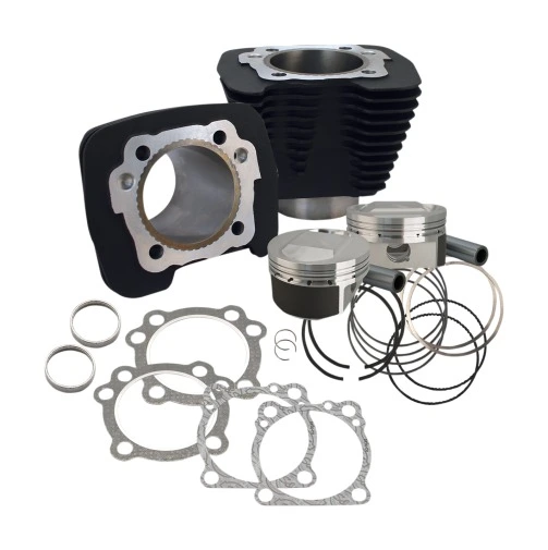 This kit converts 1200cc HD Sportster models to 1250cc displacement. No machining or rebalancing is required. Forged pistons have larger than stock valve pockets and accept up to 2.00″ valves. Kit contains forged flat topped 3 9/16″ bore pistons with coated piston skirts, S&S 3-9/16″ bore cylinders, MLS head gaskets, base gaskets, exhaust gaskets, assembly lube, and instructions.