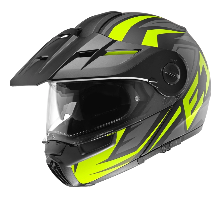 One of the most innovative features is the fully articulating peak visor, which can be adjusted to three different positions independently from the face shield and chin bar. The E1 can be worn with both the face shield and peak in place, or riders may opt to easily remove either piece for the ride. The E1 also features a closable air vent in the chin bar to ensure that riders get enough air as the ride intensifies, while a removable and washable filter will help clean the air in dirty and dusty conditions.