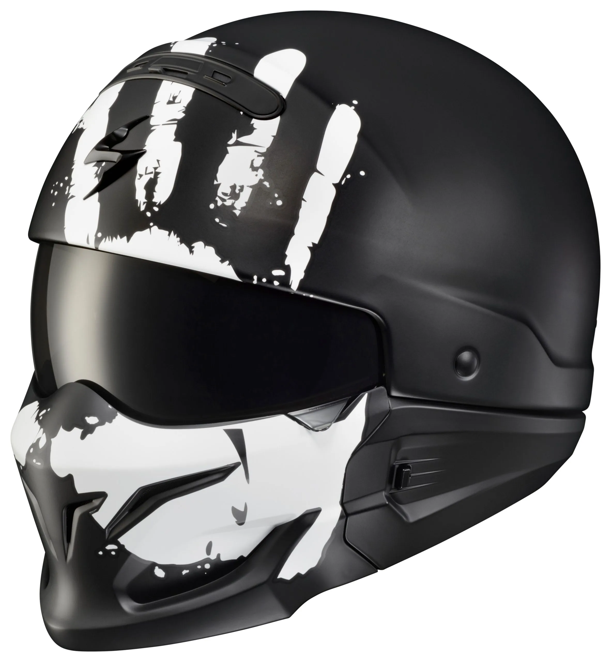 Scorpion adds a whole lot of “but wait, there’s more” to the classic half shell with the Scorpion Covert Helmet. They start off strong with a tune-able ventilation system. Next they mix in a no-frills drop down sun visor system. One pull on a tab lowers the shades then pushing the same tab retracts them; it couldn’t be easier. Snapping in a rear bottom sleeve transforms your lid into a 3/4 helmet and helps to muffle some of the cries from your lives-saving exhaust. Despite the extra coverage, Scorpion’s Kwikwick liner keeps your head in the game by channeling heat and humidity up to the ventilation ducts to be piped out the back. You’ll be cool as a cucumber. But wait, there’s more! Attaching the front mask shields your pretty face from bugs, and you-name-it debris as you’re blasting down the interstate. If you’re one who frequently needs to transition from being seen to only heard, the Scorpion Covert is there for missions ranging from the twisties to the impossible.