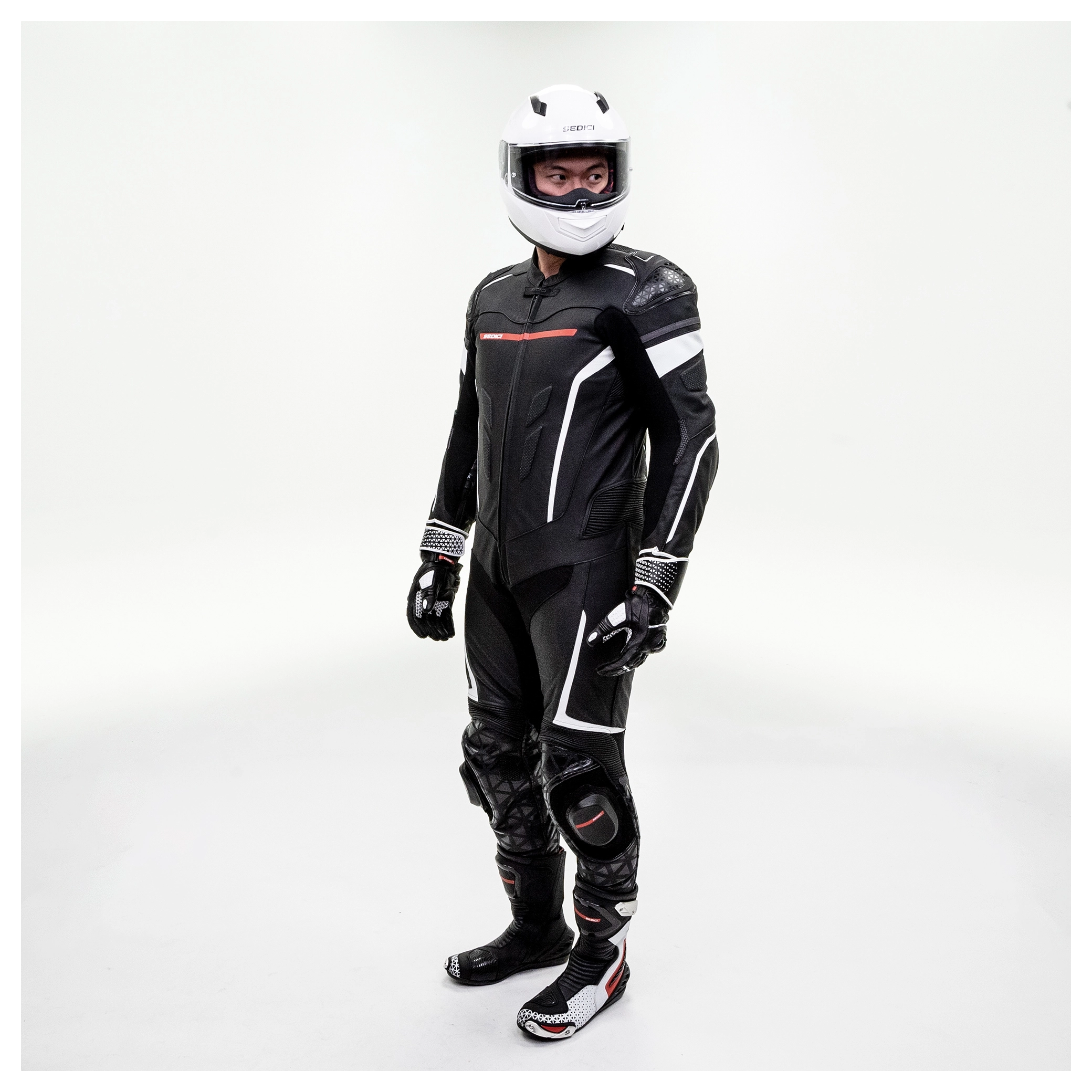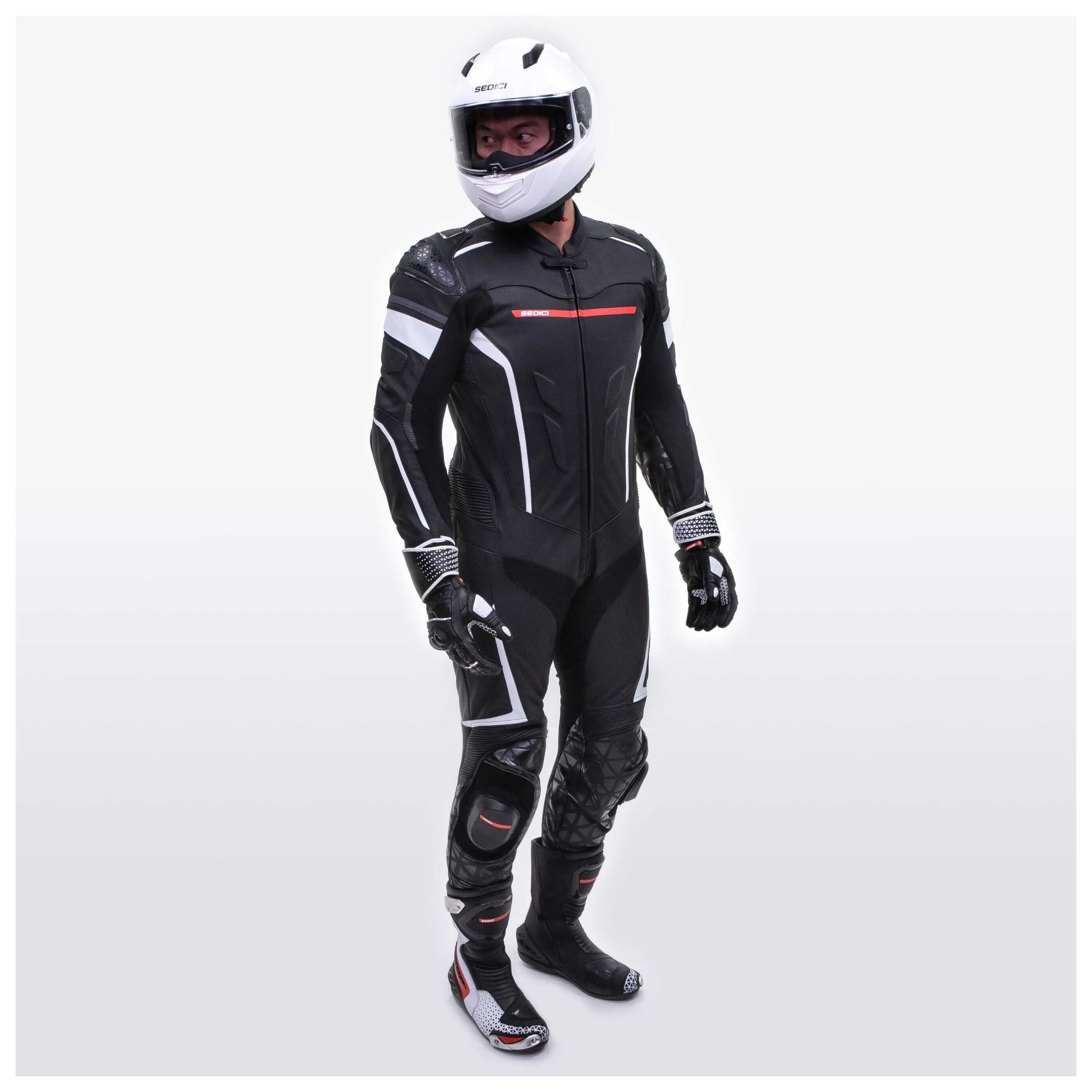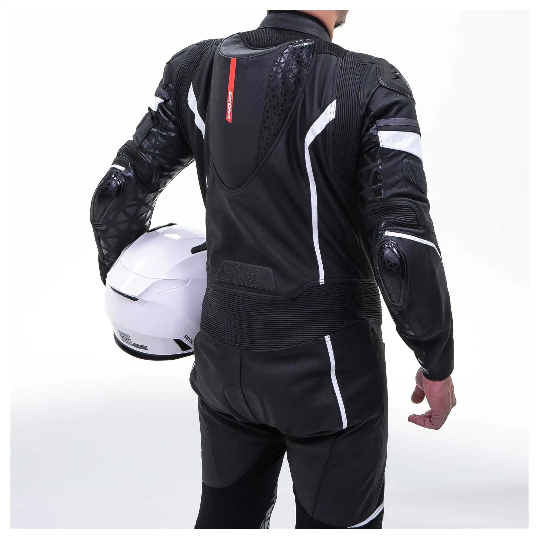 The Sedici Chicane Suit has full grain leather throughout for ultimate race performance. The Chicane is as comfortable as it is safe thanks to stretch paneling and perforated leather areas. The perforation and removable mesh liner allow for optimal airflow on those hot hot track days. Not only does the Chicane have double layers of cowhide throughout higher impact zones, this suit also comes equipped with CE level 2 armor at the shoulders, elbows and knees for ease of mind.
