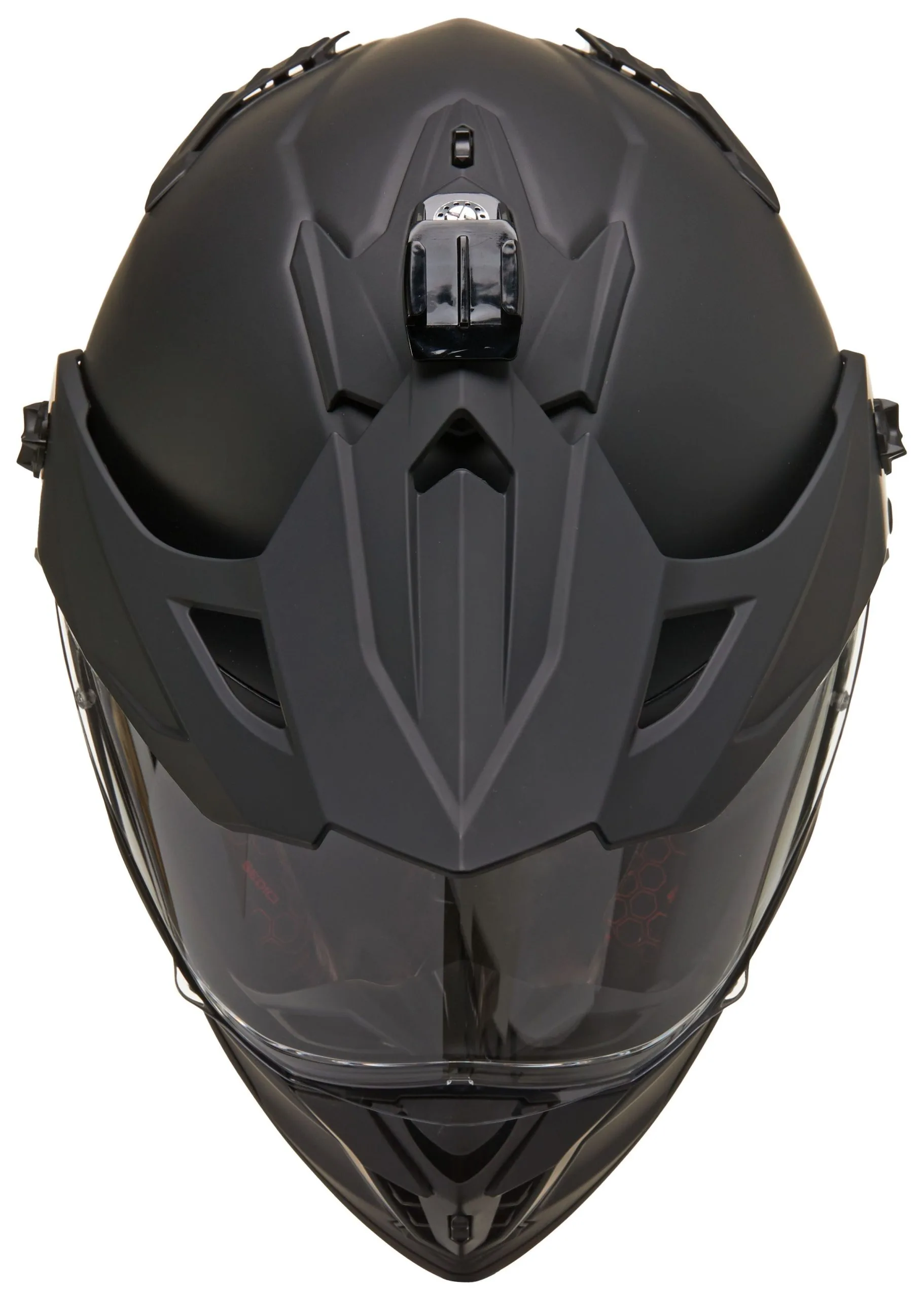 The Duale Helmet features a multi-fiber matrix ADV shell that is aerodynamically tuned shape reduces lift and turbulence, so you can ride in comfort for many miles to come! You’ll be able to keep your cool effortlessly with high flow chin vents that channels fresh air across the inner shield and your face and a central top intake vent at the crown that feeds air through the deeply channeled EPS through the three rear exhaust vents that maximize air extraction. A tooless quick-release peak visor, anti-scratch/pinlock ready face shield and internal dark smoke drop down visor all work together to ensure a clear field of view. Make sure you’re protected on your next ADV/dual sport adventure with the Sedici Duale Helmet.