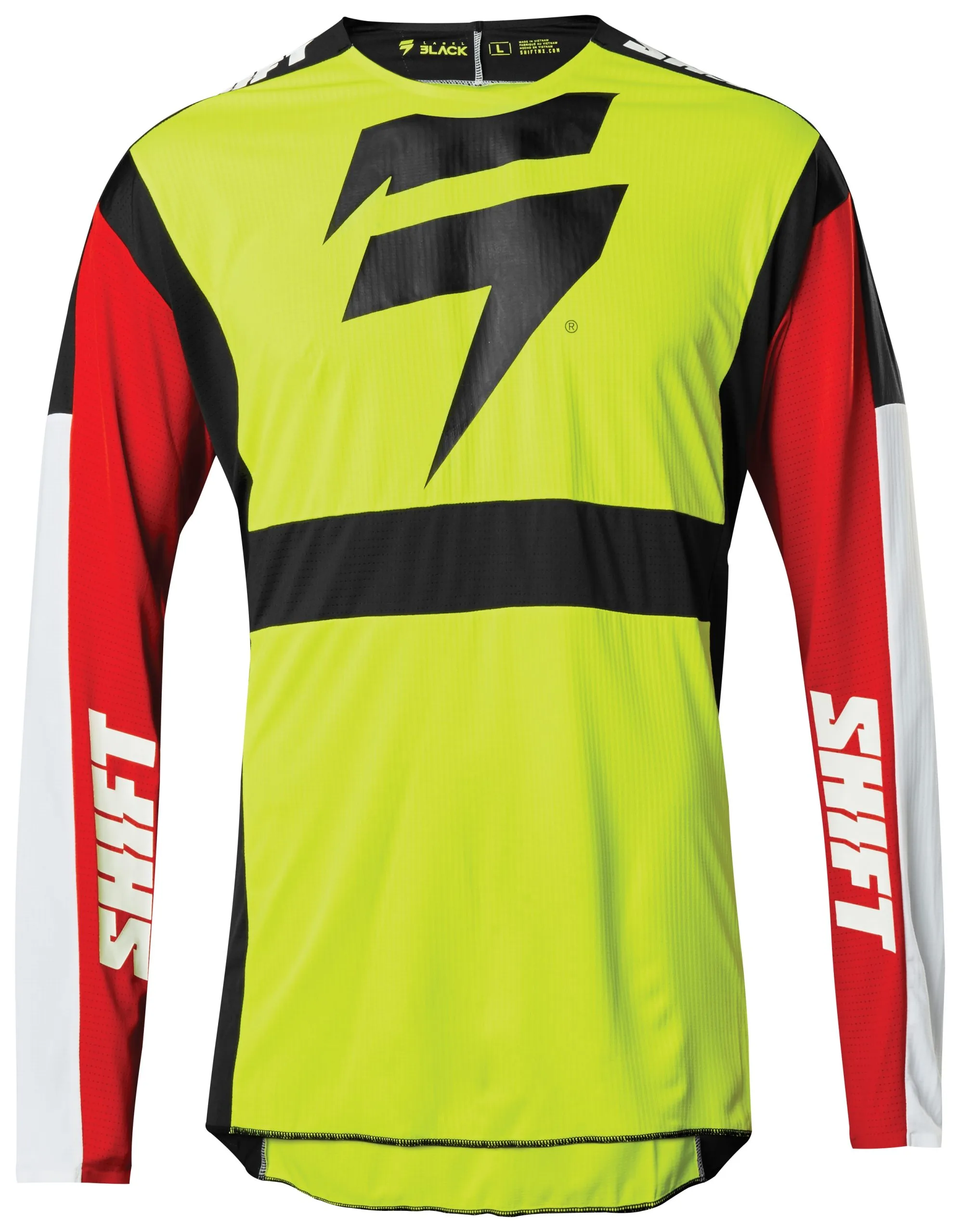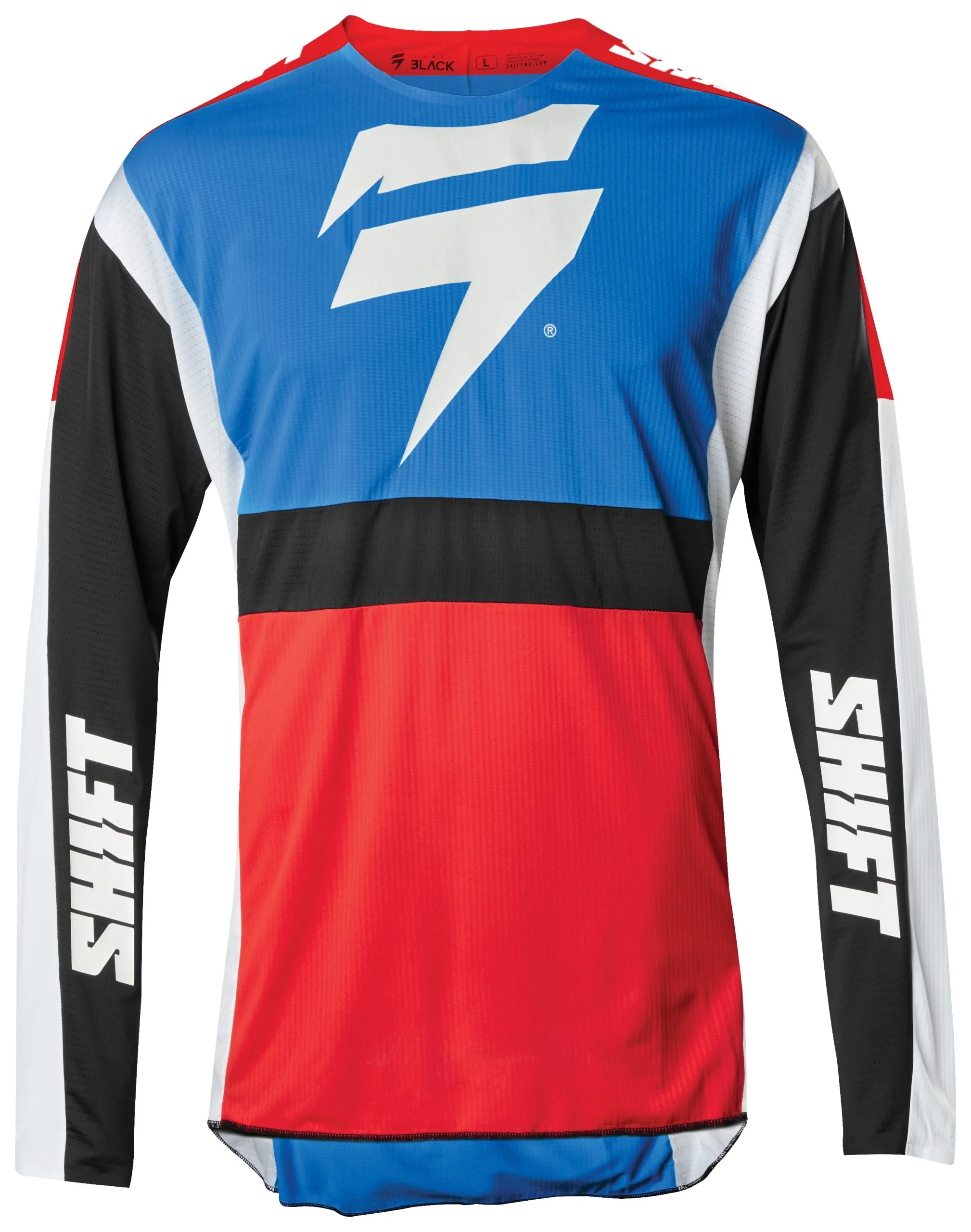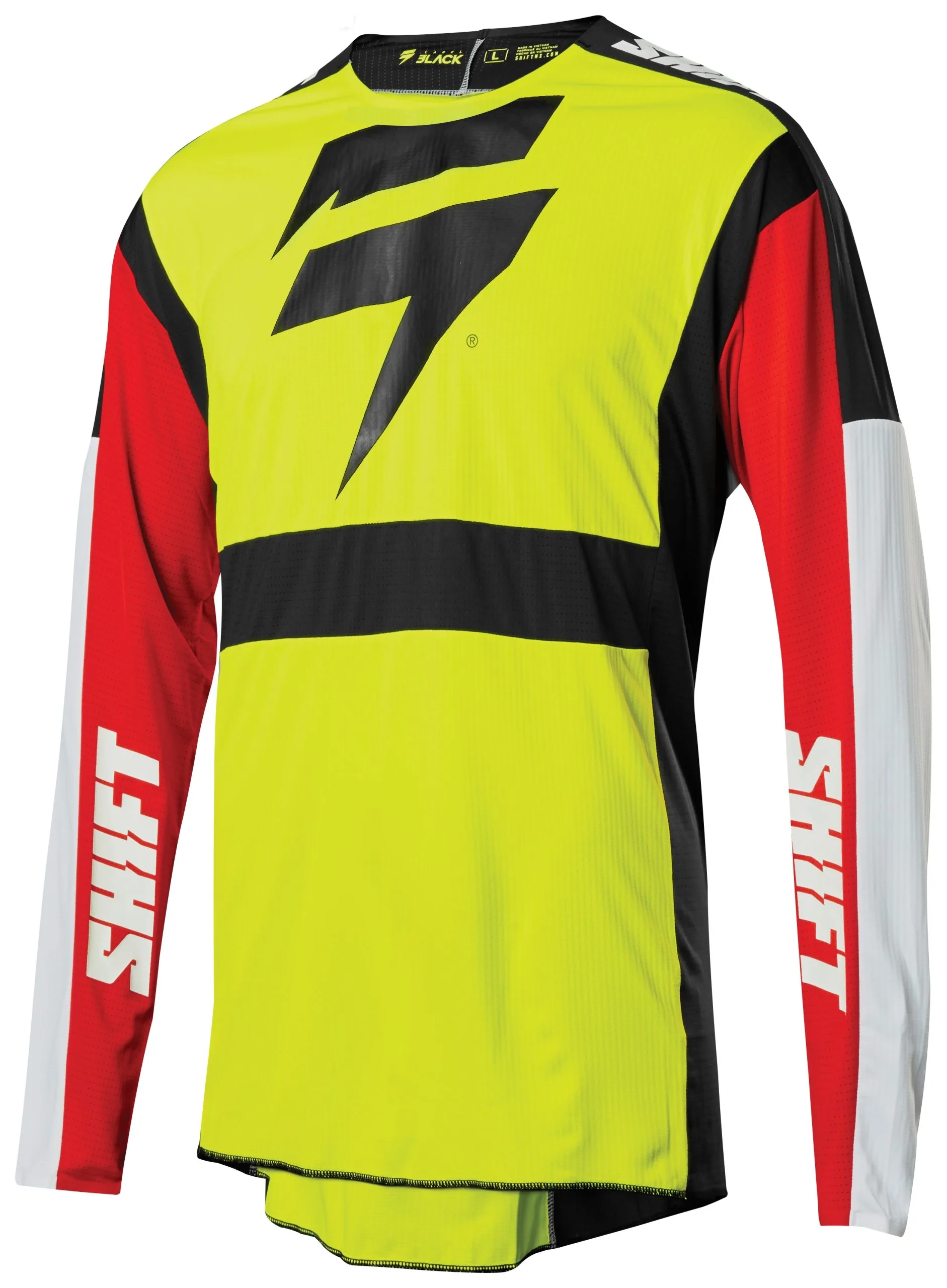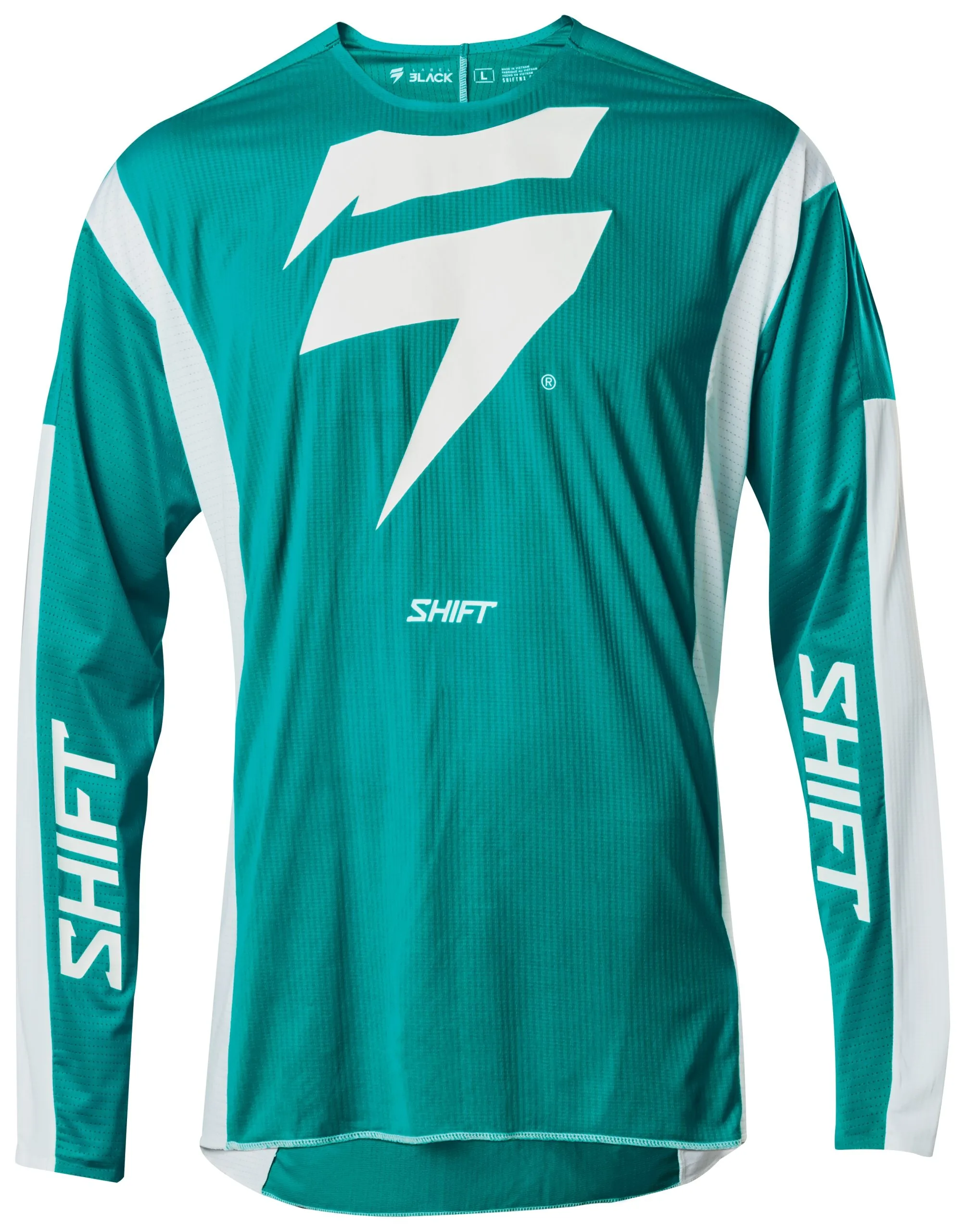 Featuring a minimalist dual-color design, the Black Label Race Jersey is primed to standout on the track for its appearance while keeping you out in front with its performance. The iconic Shift bar bolt emblem is centered on the chest, while the Shift wordmark flanks each inner arm. Offered in an aqua green and white combo along with a traditional red and black colorway, a favorite of the Geico Honda team. The 3LACK Label jersey’s combination of stretch and ventilation provides you with the most free and breathable riding experience on the market.
