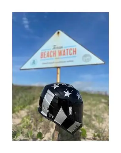 Designed 100% with motorcycle riders in mind, the Simpson Ghost Bandit Helmet blends the classic tough-guy Bandit styling combined with features riders have come to expect from a proper lid. The Sting Rae graphic proudly emblazons the stars and stripes with metallic flake paint that shines as bright as the dawn’s early light. The Ghost Bandit is prepared to handle just about any type of riding while providing edgy styling and complete comfort. The lightweight shell has been aerodynamically tuned for motorcycle riding and is fully ventilated for maximum airflow when you need it most. Integrated speaker and microphone pockets make it easy to install your favorite communication device and a drop-down sun visor makes riding through changing light conditions as easy as flipping a switch.
