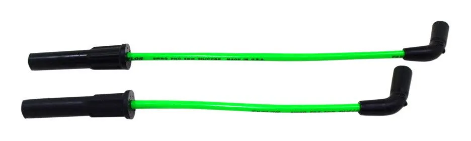 These designer plug wire sets are designed for electronic ignitions and come in distinctive, highly visible colors. They are pre-cut and have the plug/coil boots and terminals already installed. The boots and wires are made from extra-high-temperature silicone, which gives protection up to 600°F. The Spiro-Pro core provides up to 10 times the conductivity of a standard carbon-core wire. The low resistance means they run cooler and last three to four times longer than carbon-core wires.