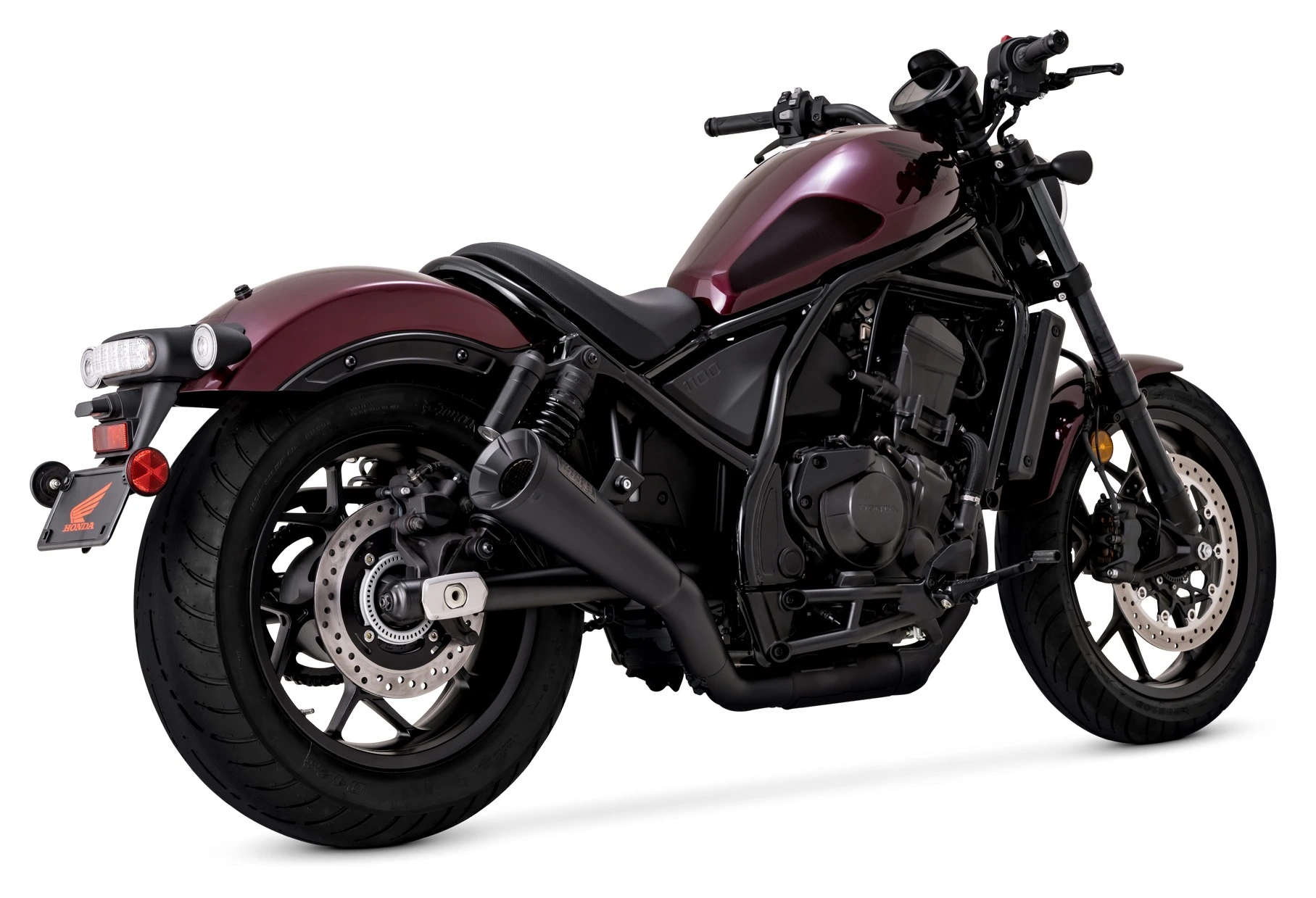 The new 4.5″ Upsweep slip-on delivers the right rumble and performance to the new Rebel. With improved cornering clearance and over 50% weight reduction, Vance & Hines unleashes the fun of the Rebel 1100. Finished in a rich matte black ceramic finish, with a matching connector heatshield, the 4.5″ Upsweep slip-on is the perfect upgrade to the new Rebel 1100.