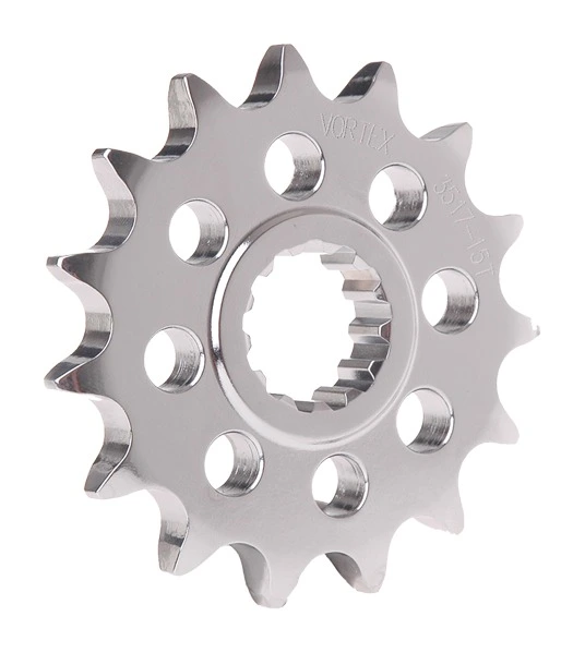 Vortex Steel Front Sprockets are well known in the motorcycle world for being tough, attractive and competitive. On the surface they feature a dazzling zinc coating and weight reducing holes. Beneath the surface they feature precision machined and induction hardened steel. Unlike heat treated steel, the process of induction hardening heats the steel using a controlled electrical current. This method allows Vortex to manufacturer a quality sprocket with extremely tight tolerances.